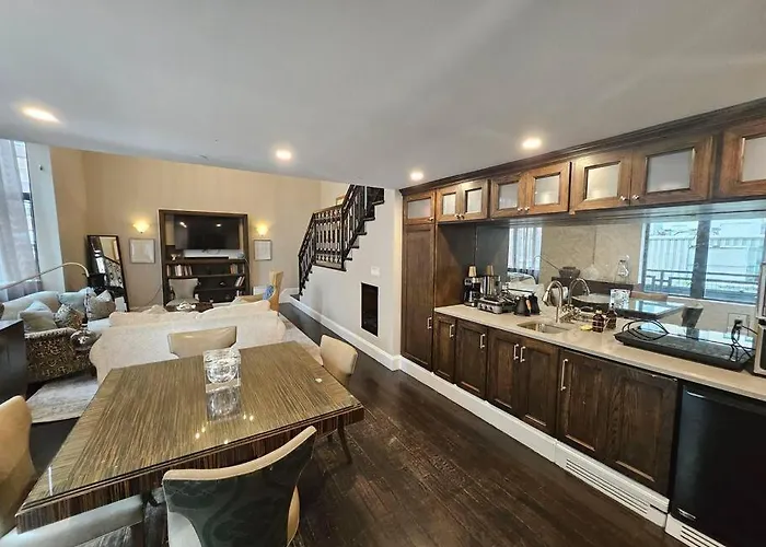 2-room The Renwick Duplex At The Mansfield Midtown Apartment lies in the Manhattan district and offers swift access to St. Patrick's Cathedral, which is just 8 minutes' walk away. This grand apartment is located only a few metres from Radio City Music Hall and equipped with cleaning amenities including a washing machine.